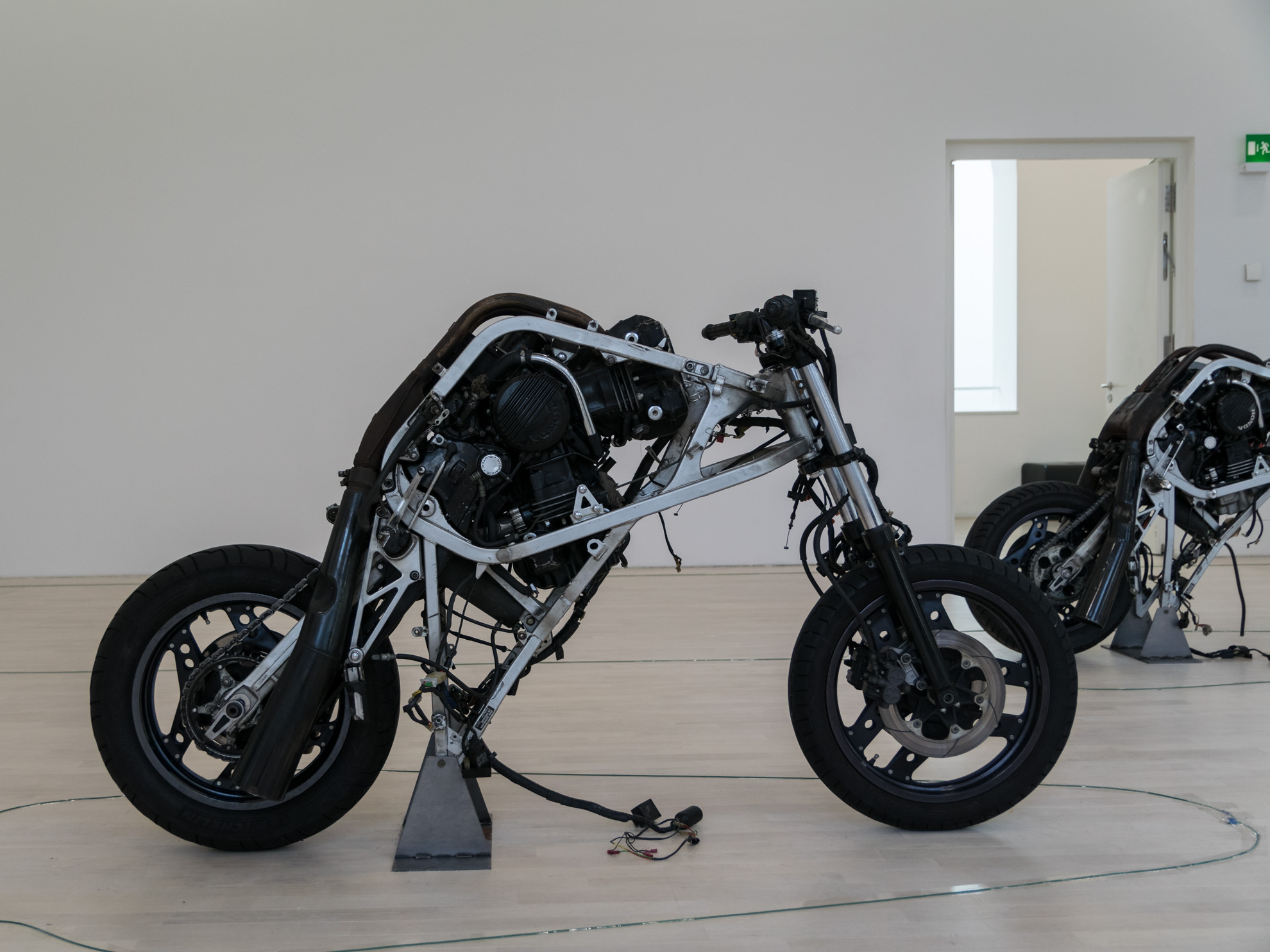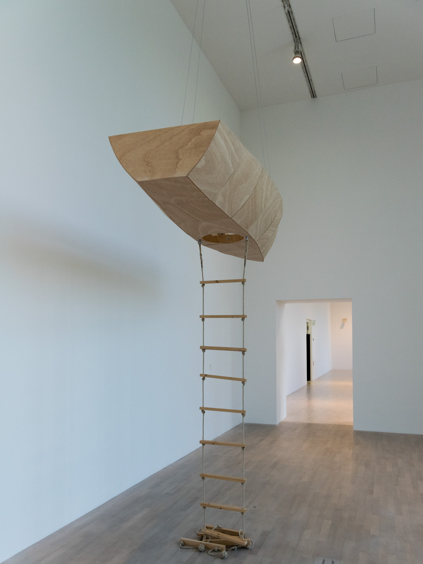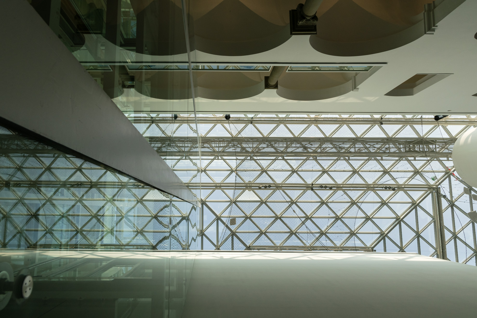 Auf nach Düsseldorf …. Dieses Mal fahren wir ins K21 – ein architektonischer Leckerbissen mit seinen im Inneren wunderschönen Säulen, den weiß geputzten Wänden und der großen Glaskuppel. Genau unter dieser kann man auf 2500 m² Stahlnetz scheinbar schwebend in einem nachempfundenen Spinnennetz krabbeln. Ein direkter Blick nach unten lässt einen schon kurz schlucken, aber in Vertrauen auf das Material geht es dann weiter…. gehend, krabbelnd und liegend. Ca. 10 Minuten darf man „in orbit“ verweilen, bevor man sich wieder auf standfesten Boden begeben muss.